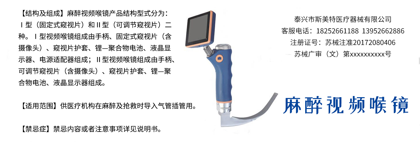 泰興市斯美特醫療器械有限公司是一家集麻醉視頻喉鏡研制、開發、銷售于一體的專業企業。近幾年來本公司通過不斷完善和改造,硬件設施與軟件管理達到標準。 本公司生產的麻醉咽喉鏡產品面向全國各省、市、自治區,部分產品遠銷美洲、歐洲、南非、東南亞等諸多國家及地區。置身中國經濟開放的背景,制定了醫藥板塊的戰略決策和醫療器械行業的發展趨勢,制定了面向未來,與時俱進的中長期發展規劃,確定了"以技術優勢確立核心能力、